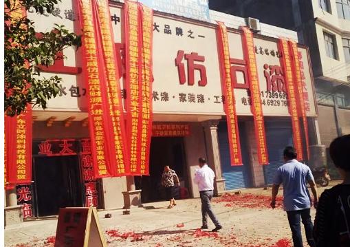 7月28日上午九時九分,伴隨著鞭炮和煙花齊鳴,來士威仿石漆邵東旗艦店在精心籌備中盛大開業(yè)!該店位于經(jīng)濟和工商業(yè)氣氛極佳的邵東 ,國道旁邊,地理位置極佳,店的招牌由多個門頭組成,非常醒目各位和大氣。